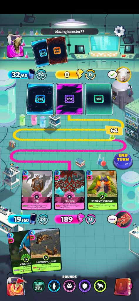 The gameplay in CUE is simple but strategic. Players take turns playing cards from their hand to attack their opponent’s creatures and health points. Creatures have different abilities that can be used to defend against attacks, buff other creatures, or deal damage to the opponent. Players can also use special cards to heal their creatures, draw more cards, or change the rules of the game.
