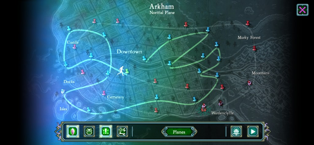 As you progress through the game you get to various places all over Arkham and its surroundings, including university, parks, cemetary and even the Mountains of Madness (which in the book are in Antarctica but it’s still a cool easter egg).