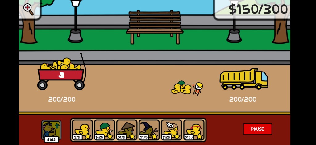 Duck warfare is a game similar to for example battlecats. You choose ducks with varying stats and attack the opposing vehicle while defending your cart.