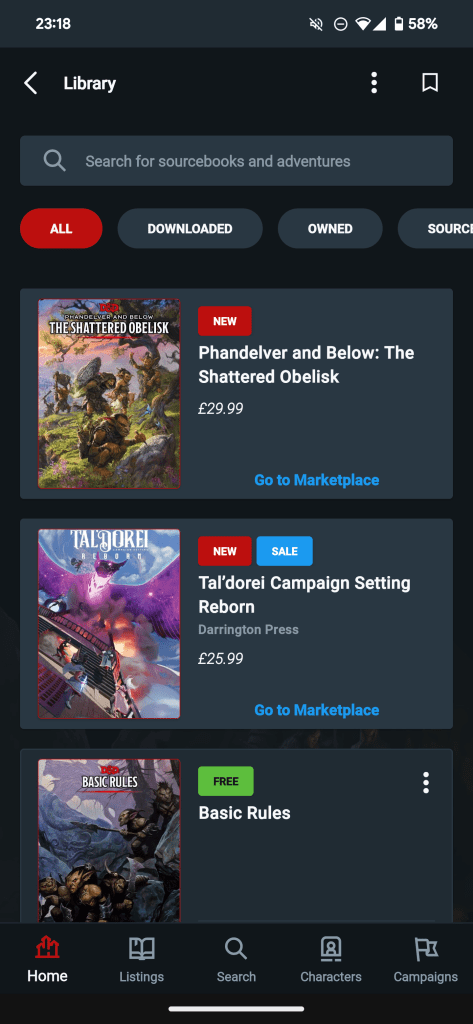 Here are some of the key features of the D&D Beyond Android app: